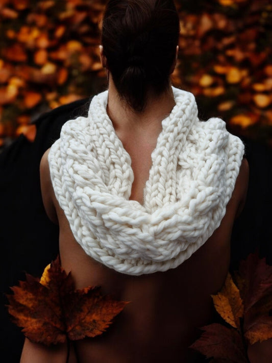 Adult's Handmade Knitted Super Chunky Cream Cable Cowl
