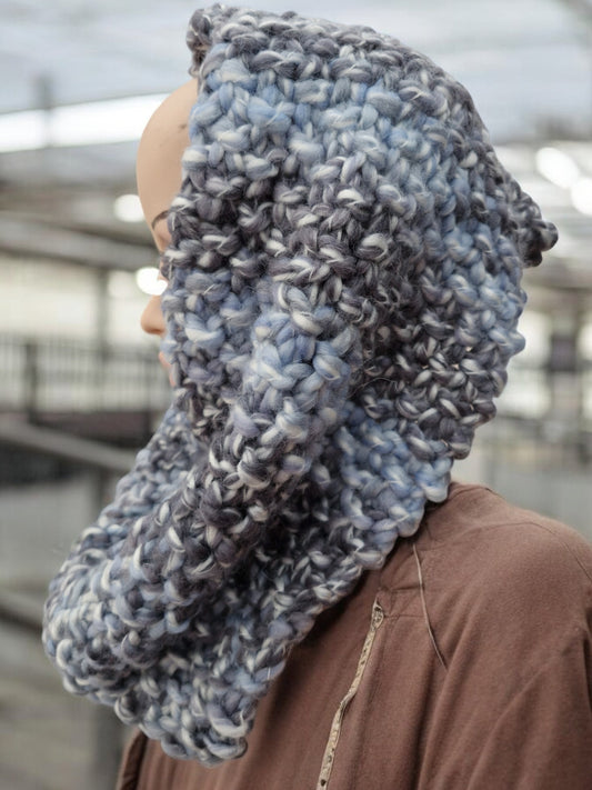 Adult's Handmade Knitted Moss Stitch Cowl - Blues and Greys