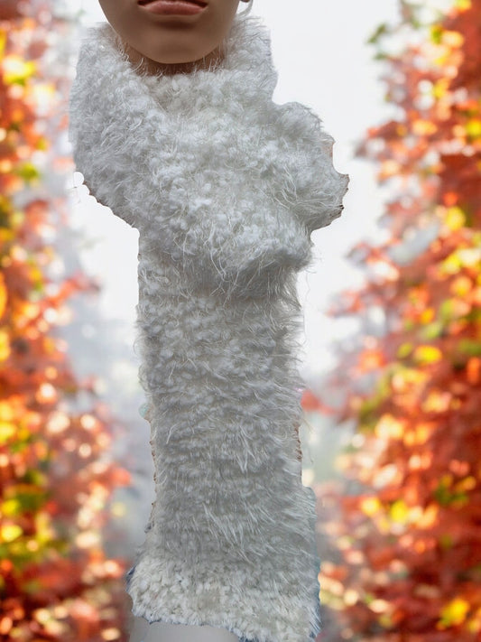 Women's Handmade Knitted Glistening Winter White Long Hair Scarf