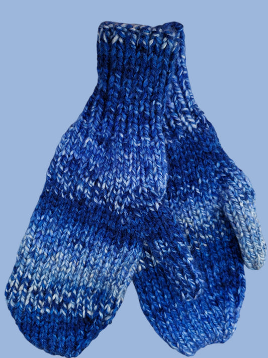 Adult's Mittens - Handmade Knitted Chunky Blues Tweed