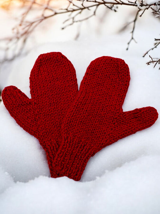 Adult's Mittens - Handmade Knitted Chunky Red Sparkle Mittens