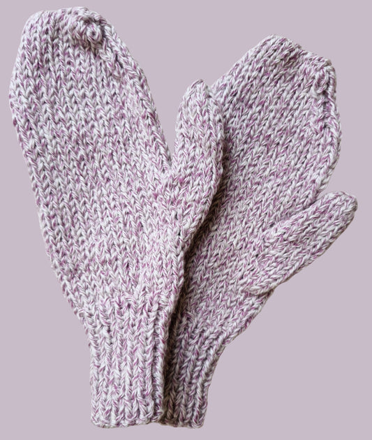 Adult's Mittens - Handmade Knitted Chunky in Lilac and White