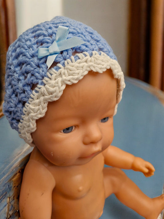 New Baby's Handmade Crochet Lace Hat - Denim Blue Wool