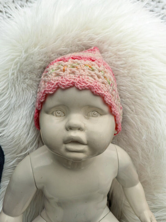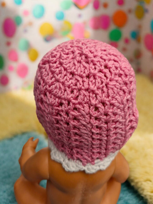 New Baby's Handmade Crochet Lace Hat - Cotton Mix in Pinks