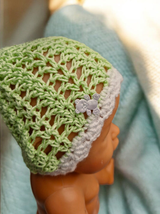 New Baby's Handmade Crochet Lace Hat - Mint Green Cotton
