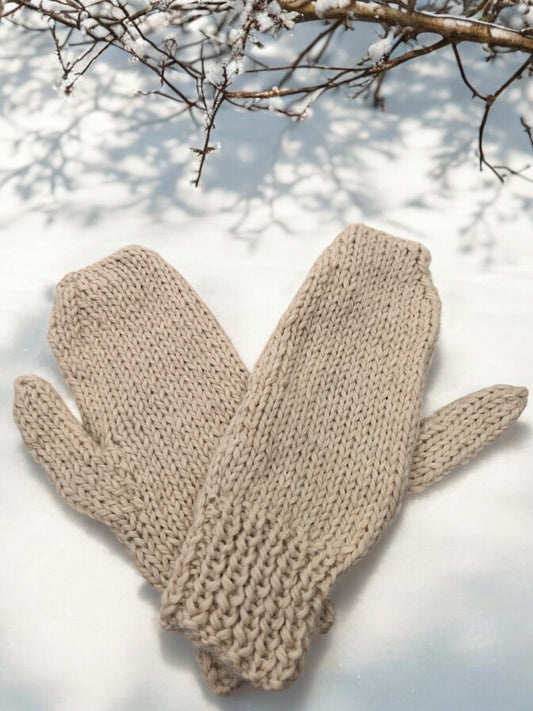 Adult's Mittens - Handmade Knitted Chunky Natural Alpaca Mittens