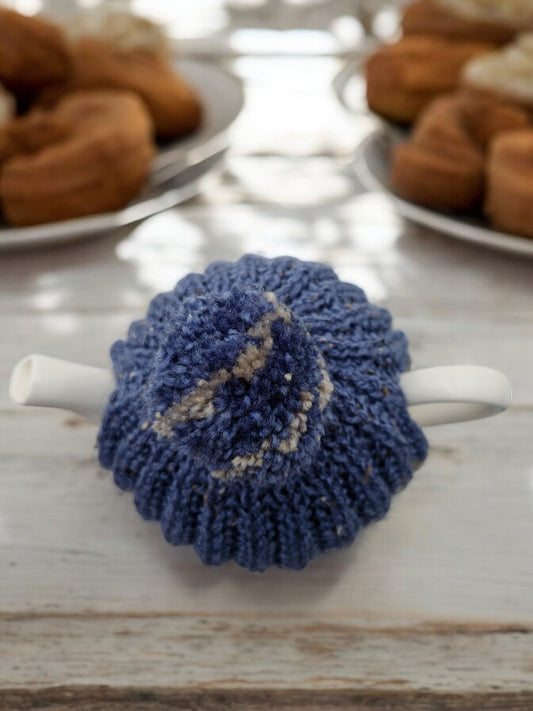 Handmade Knitted Striped Ribbed Tea Cosy with Bobble
