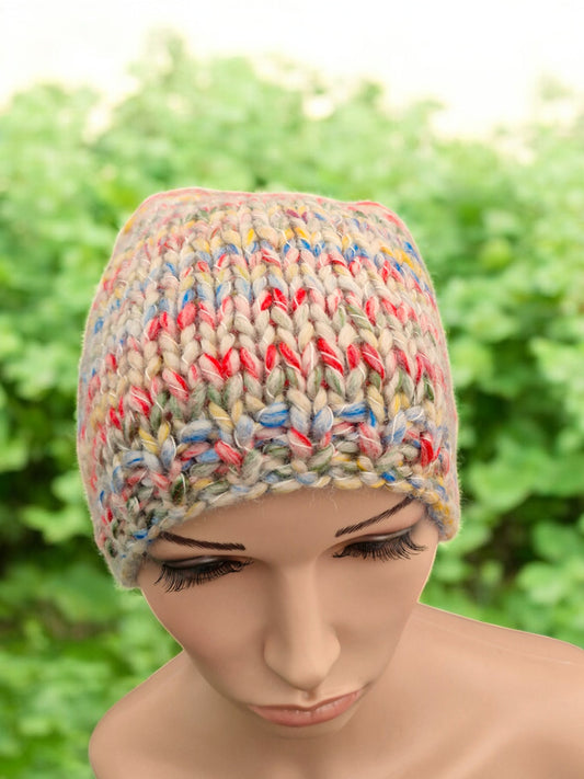 Lady's/Men's Handmade Knitted Super Chunky Thick Multi Colour Hat