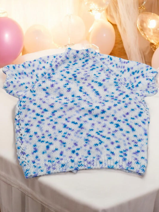 Children's Hand Knitted Lace Cardigan in Blue and White