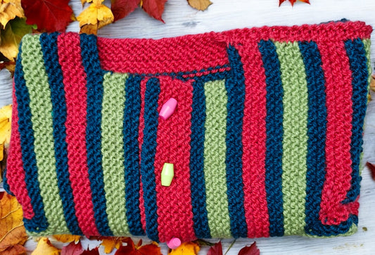 Toddler's Handmade Knitted Striped Cardigan Coat with Duffle toggles