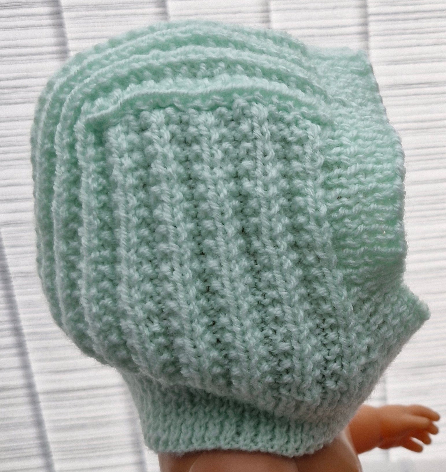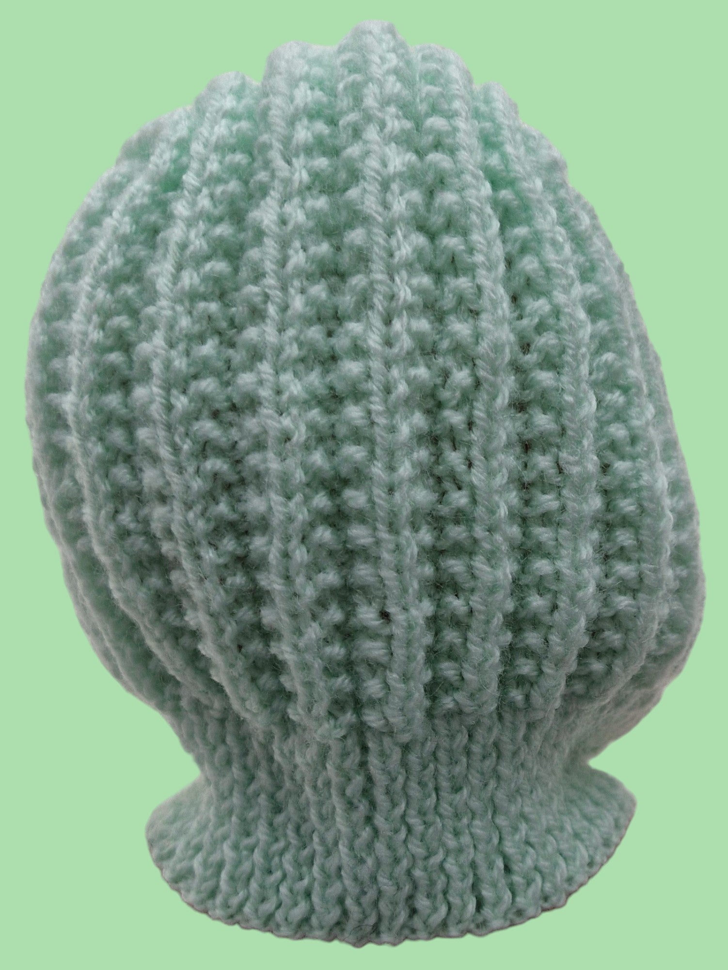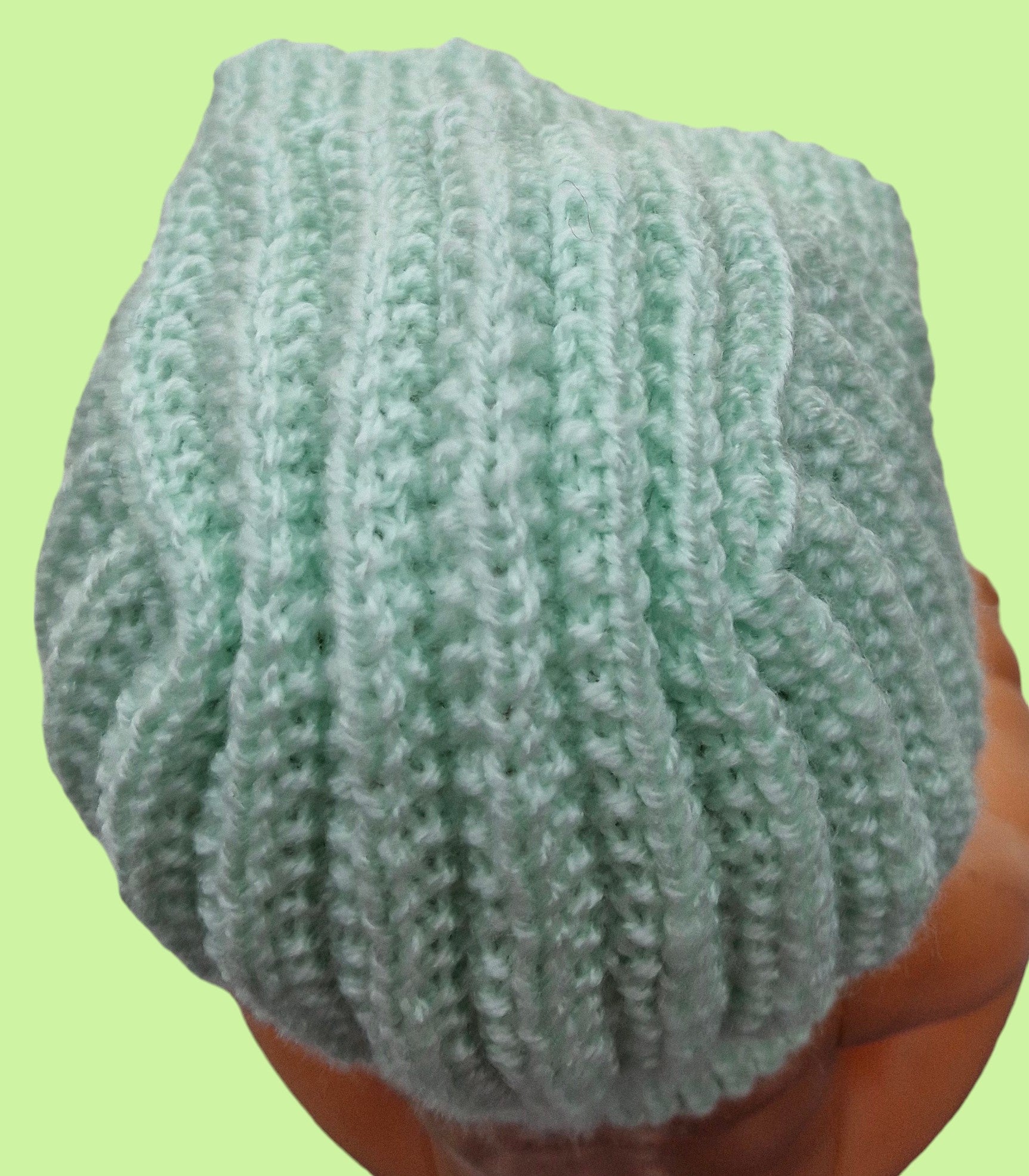 Brand new Child's Hand Knitted Ribbed Balaclava Hat in Mint Green. Hat is a pull over Balaclava style worked in all over Rib pattern. Yarn is soft, baby DK. Made from 100% acrylic - cool machine wash.