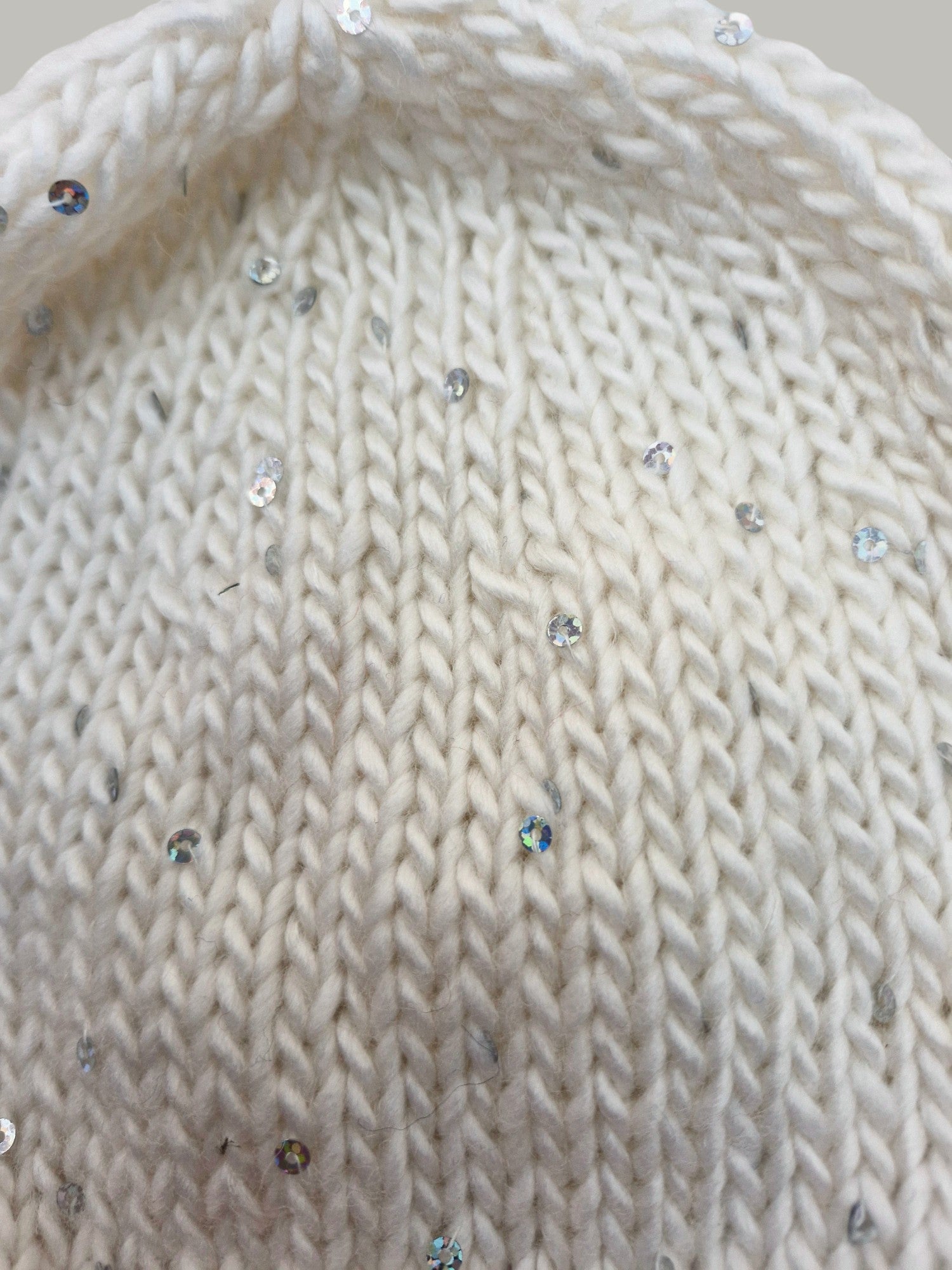 Teenagers Handmade Knitted Sequined Beanie Hat - White and Silver