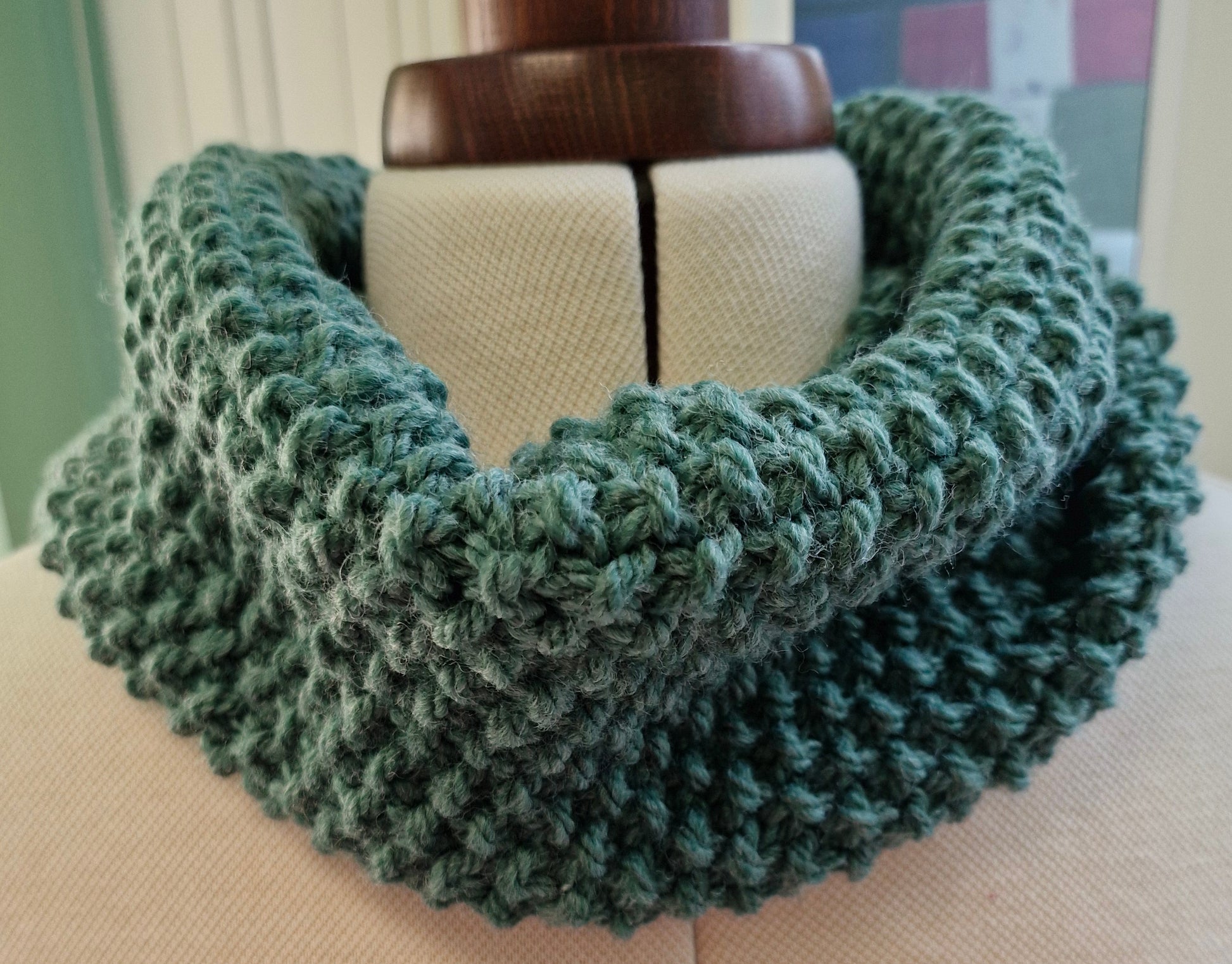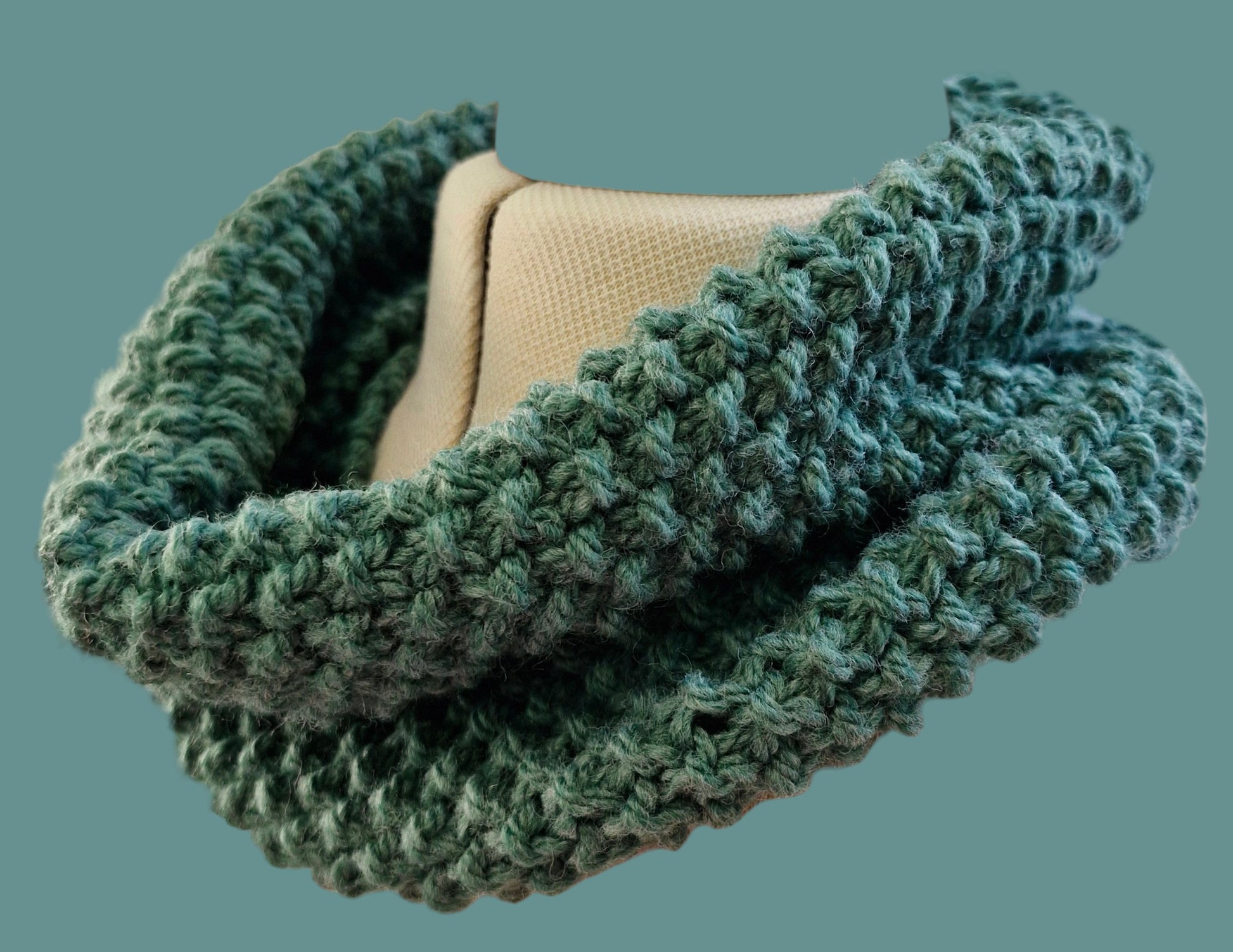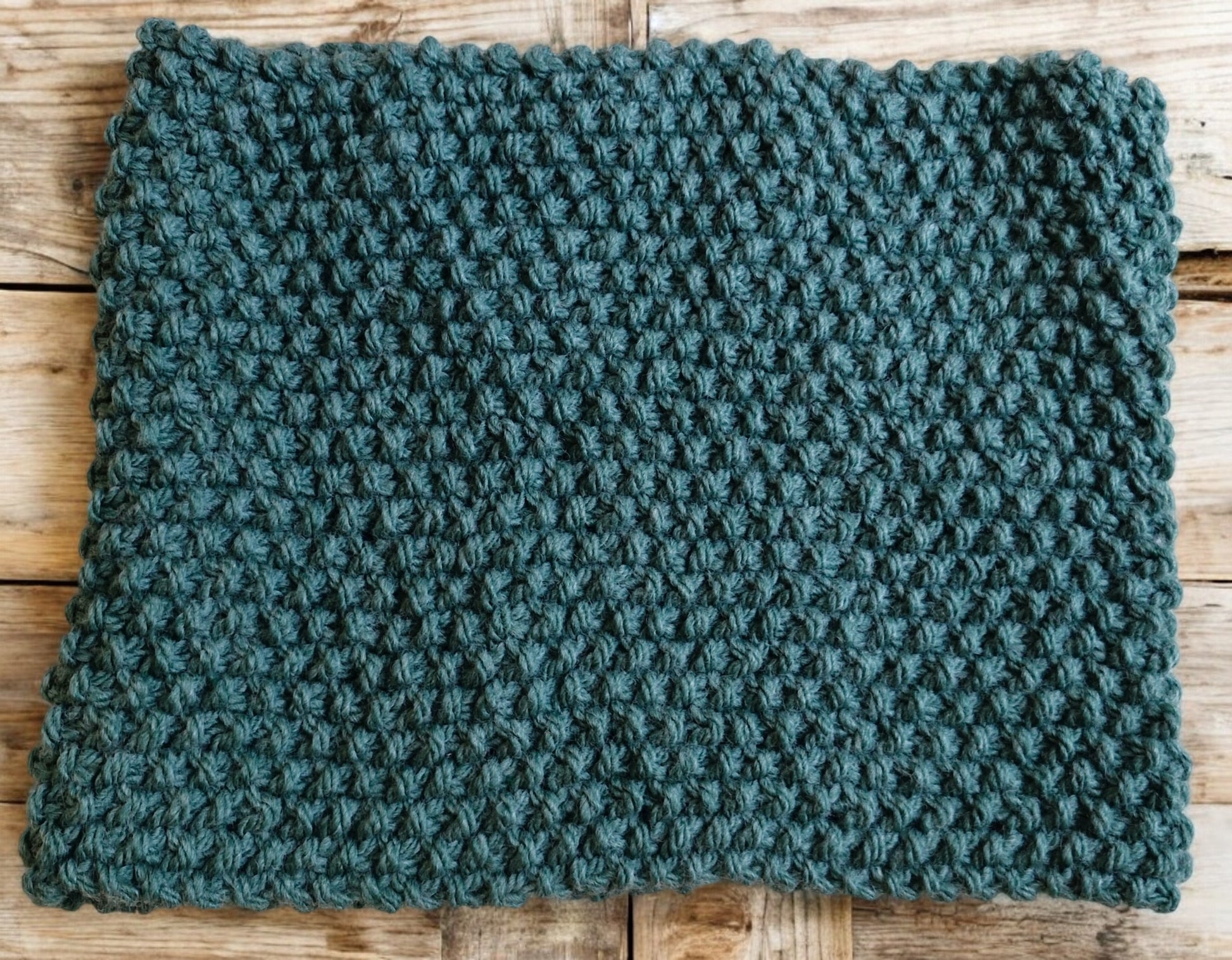 Adult's Handmade Knitted Green Moss Stitch Cowl