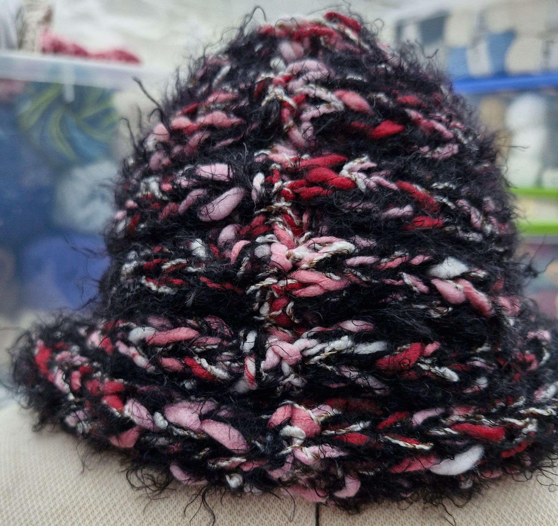 Adult's Handmade Knitted Chunky Black Fluffy Multi Colour Cowl
