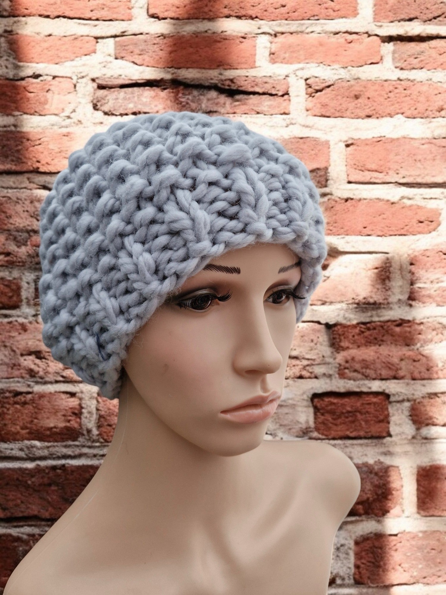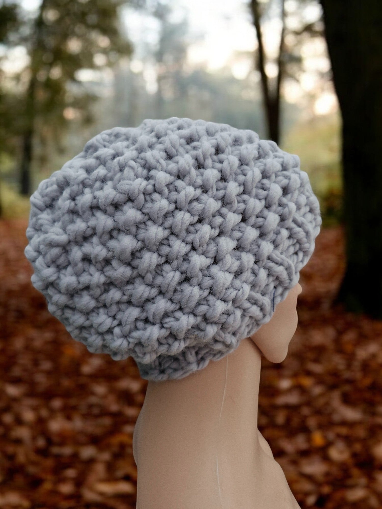 Lady's Handmade Knitted Mega Chunky Thick Hat in Moss Stitch