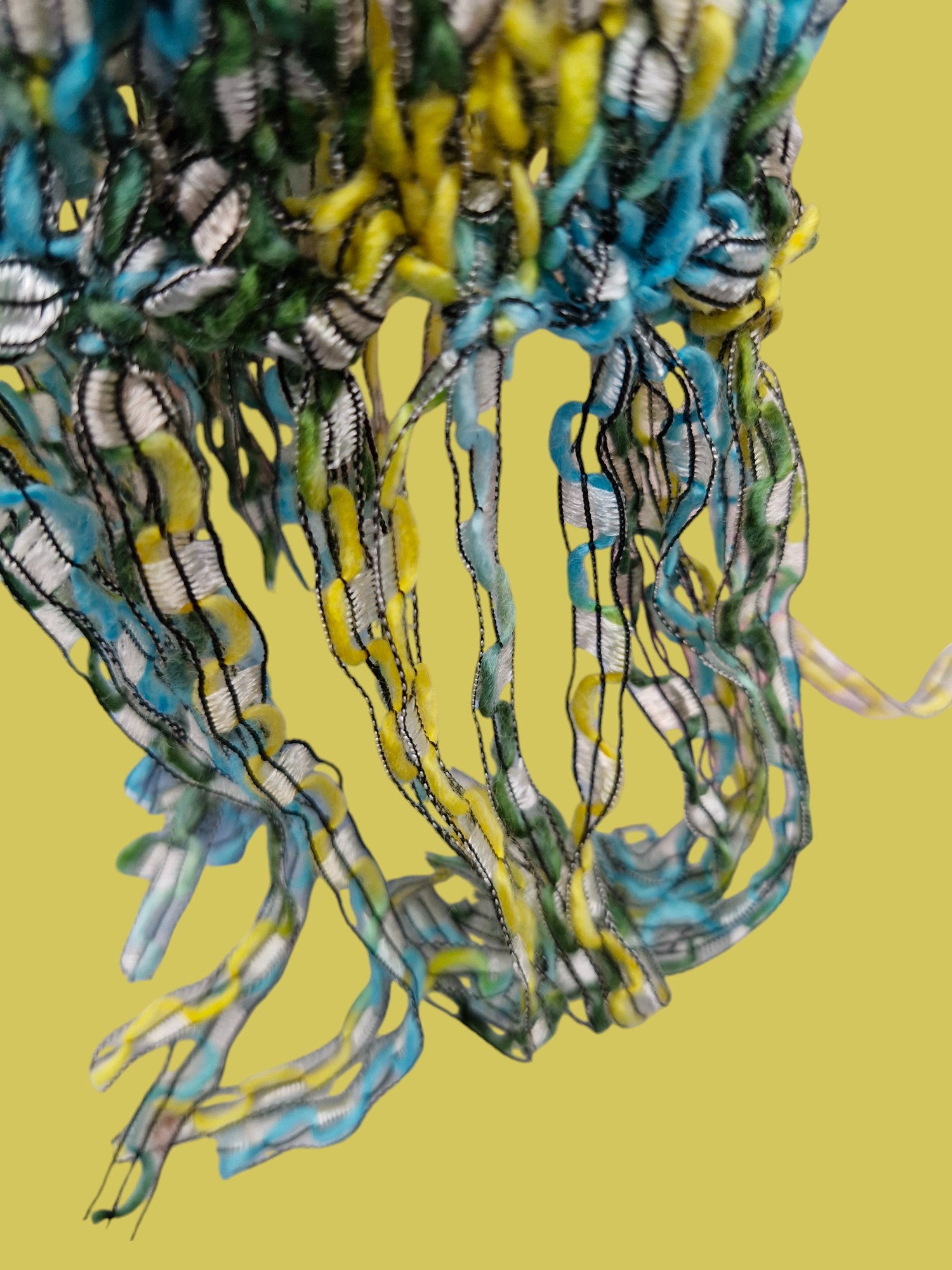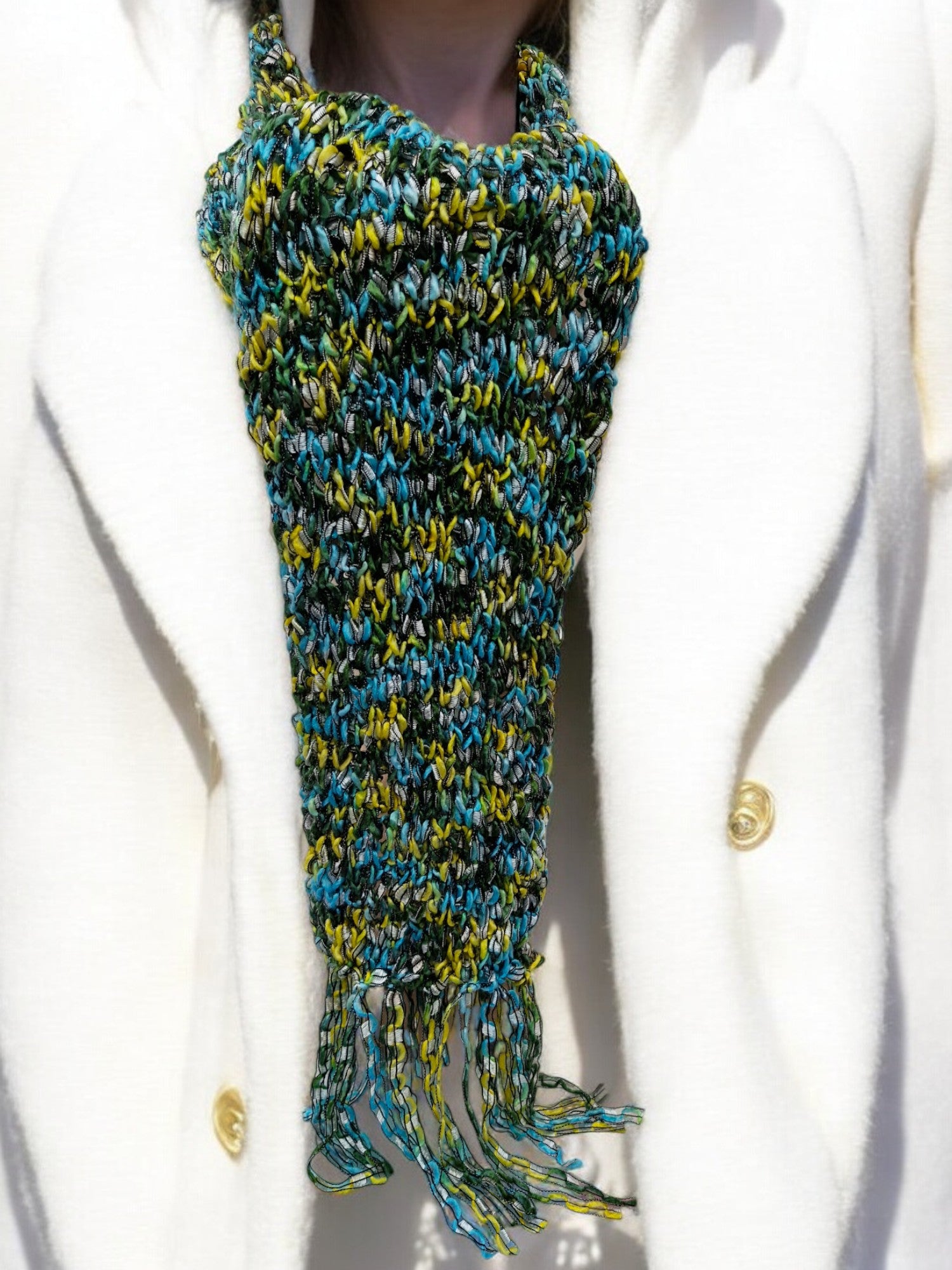 Women's Handmade Knitted Multi Coloured Ribbon Scarf - Green, Lime, Turquoise