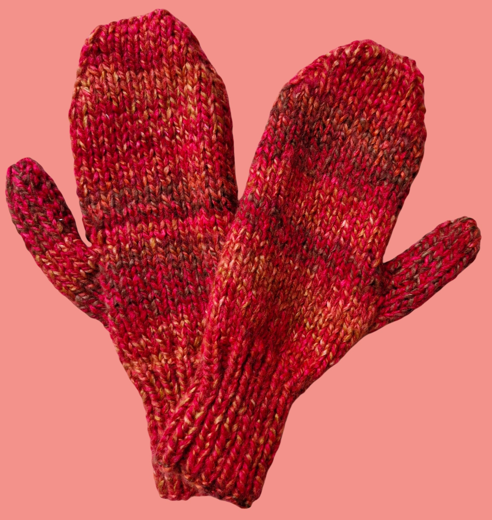 Adult's Mittens - Handmade Knitted Chunky Red, Orange, Rust, Fawn Tweed