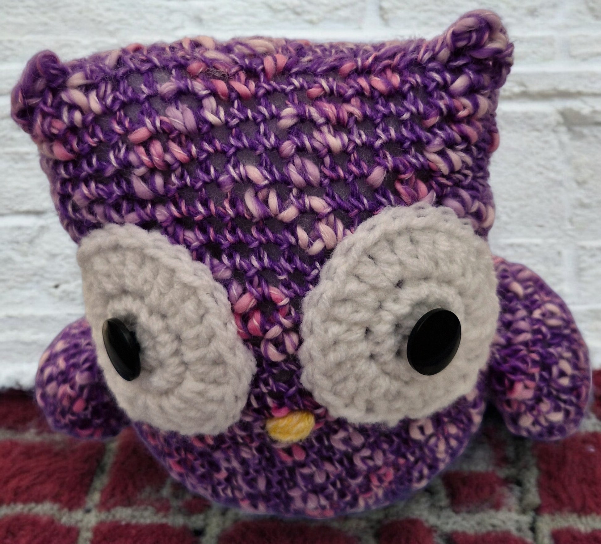 Handmade Crochet Owl - Chunky Purple Soft Toy