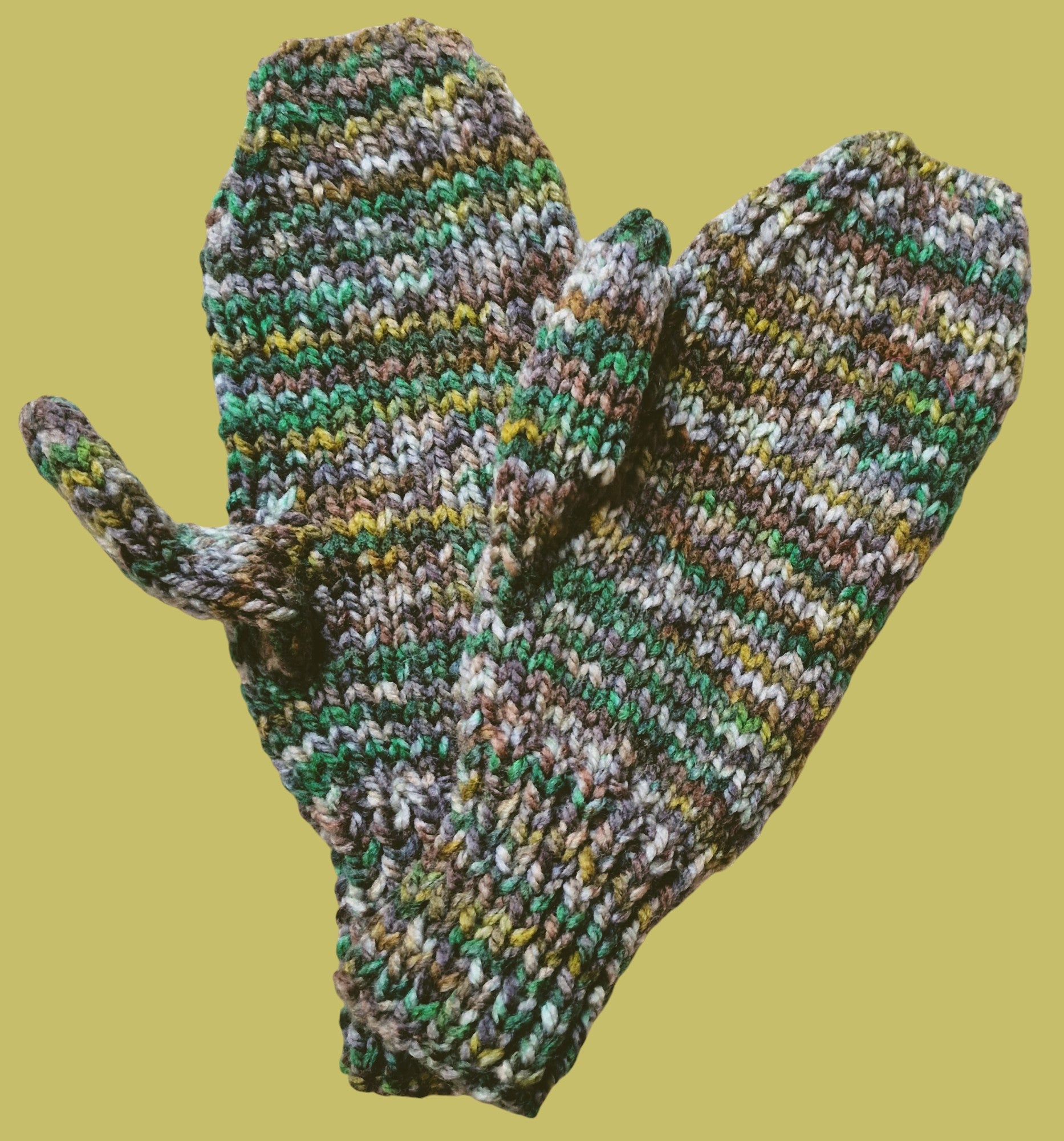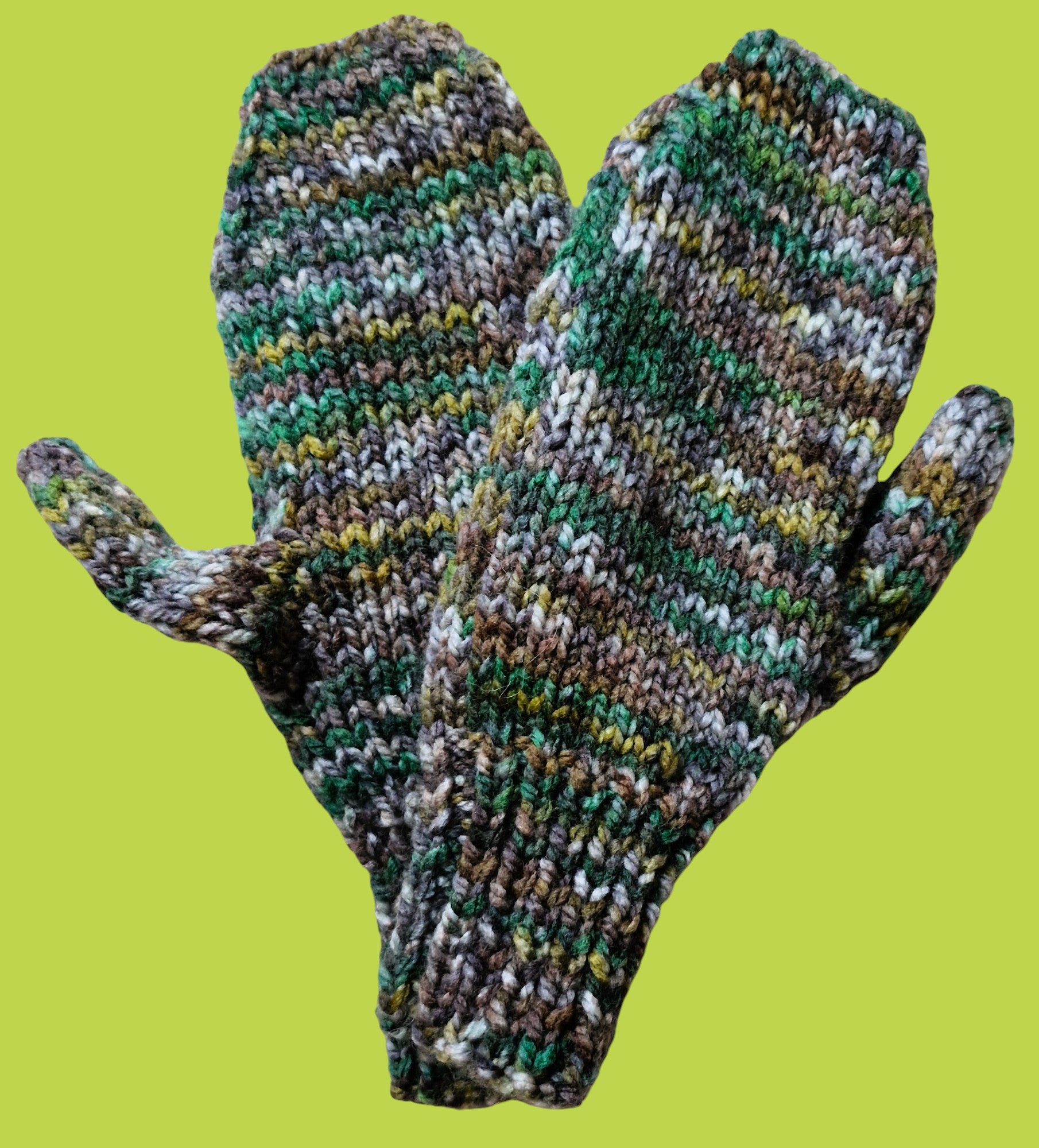 Adult's Mittens - Handmade Knitted Chunky Green, Khaki, Brown, Grey Tweed