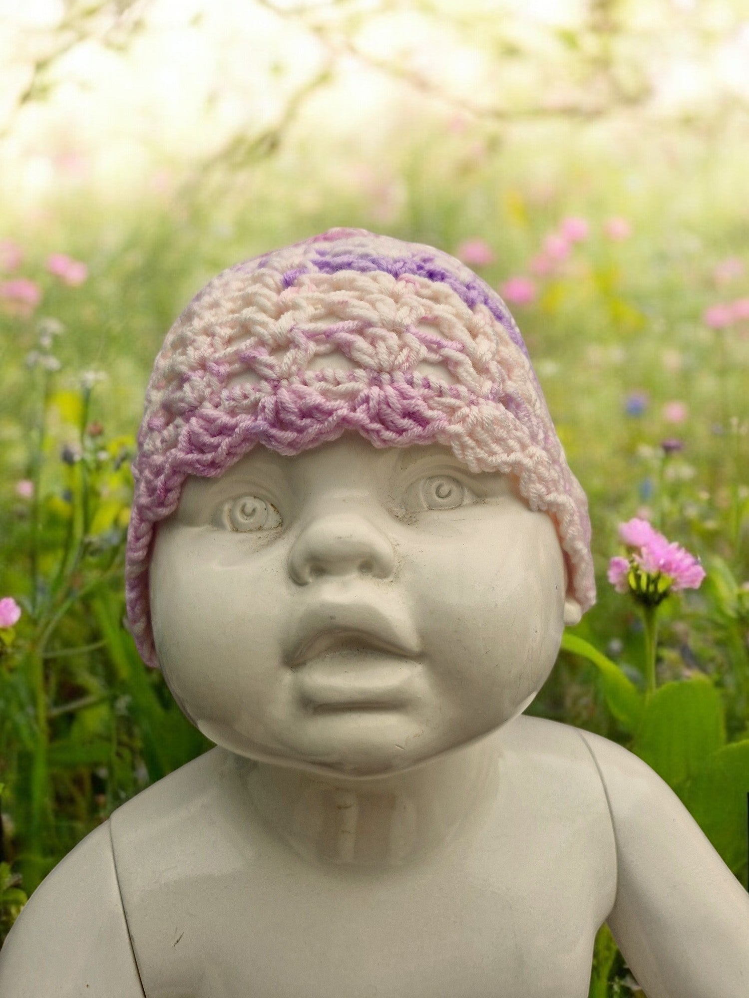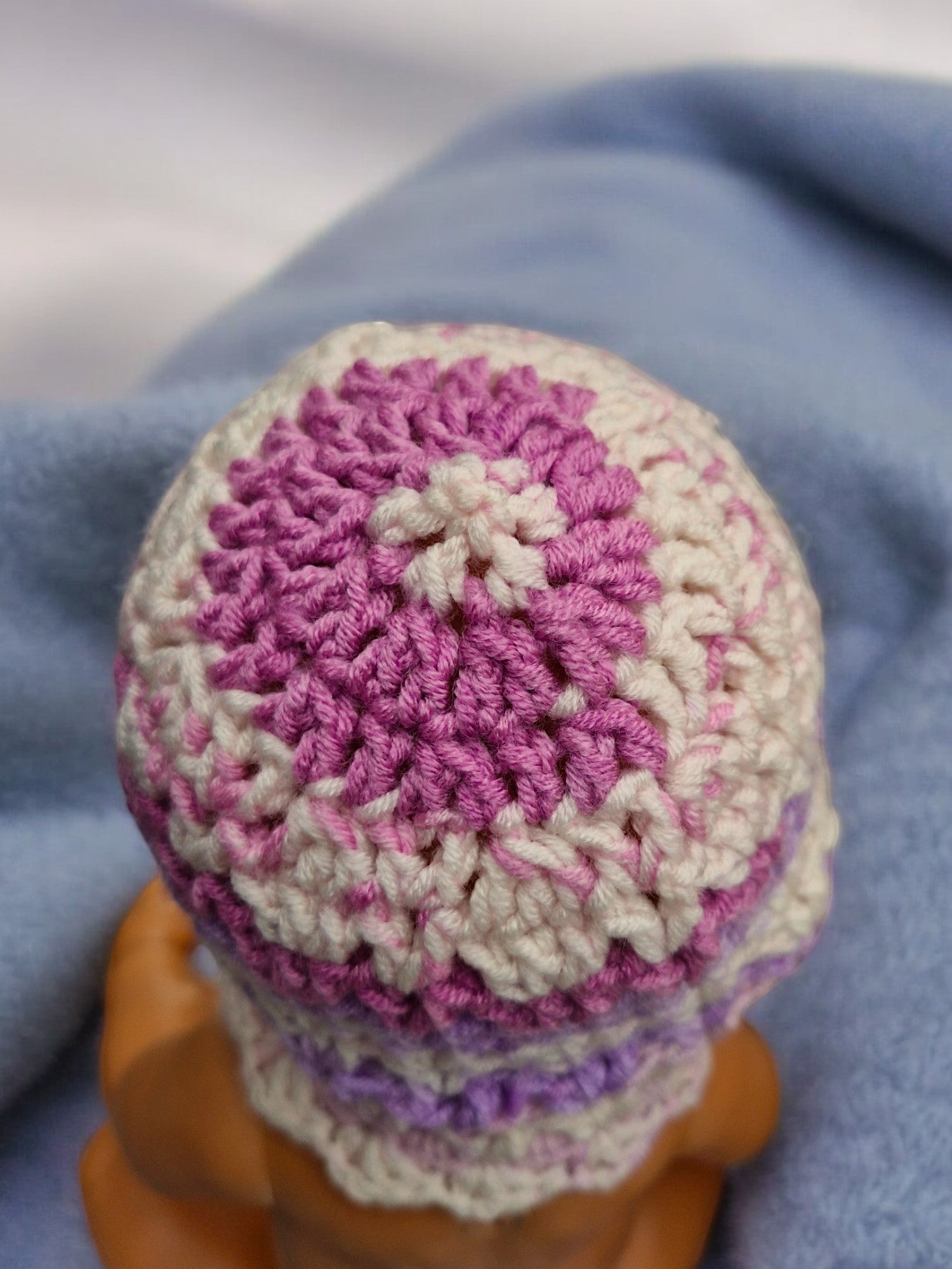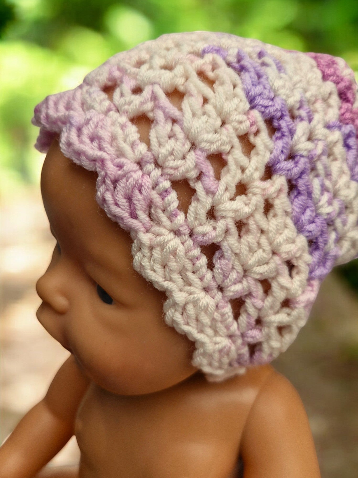 Baby's Handmade Crochet Lace Hat - Purple, Mauve, Lilac, White mix