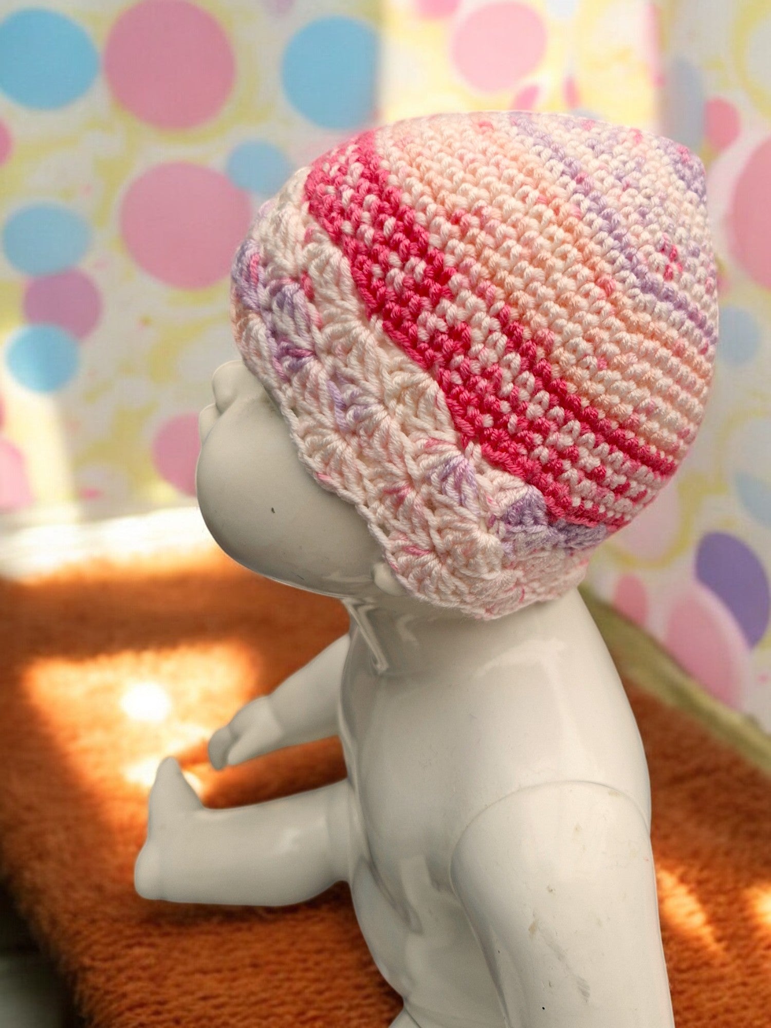 Baby's Handmade Crochet Shell Hat - Peach, Lilac, Cream, Raspberry mix