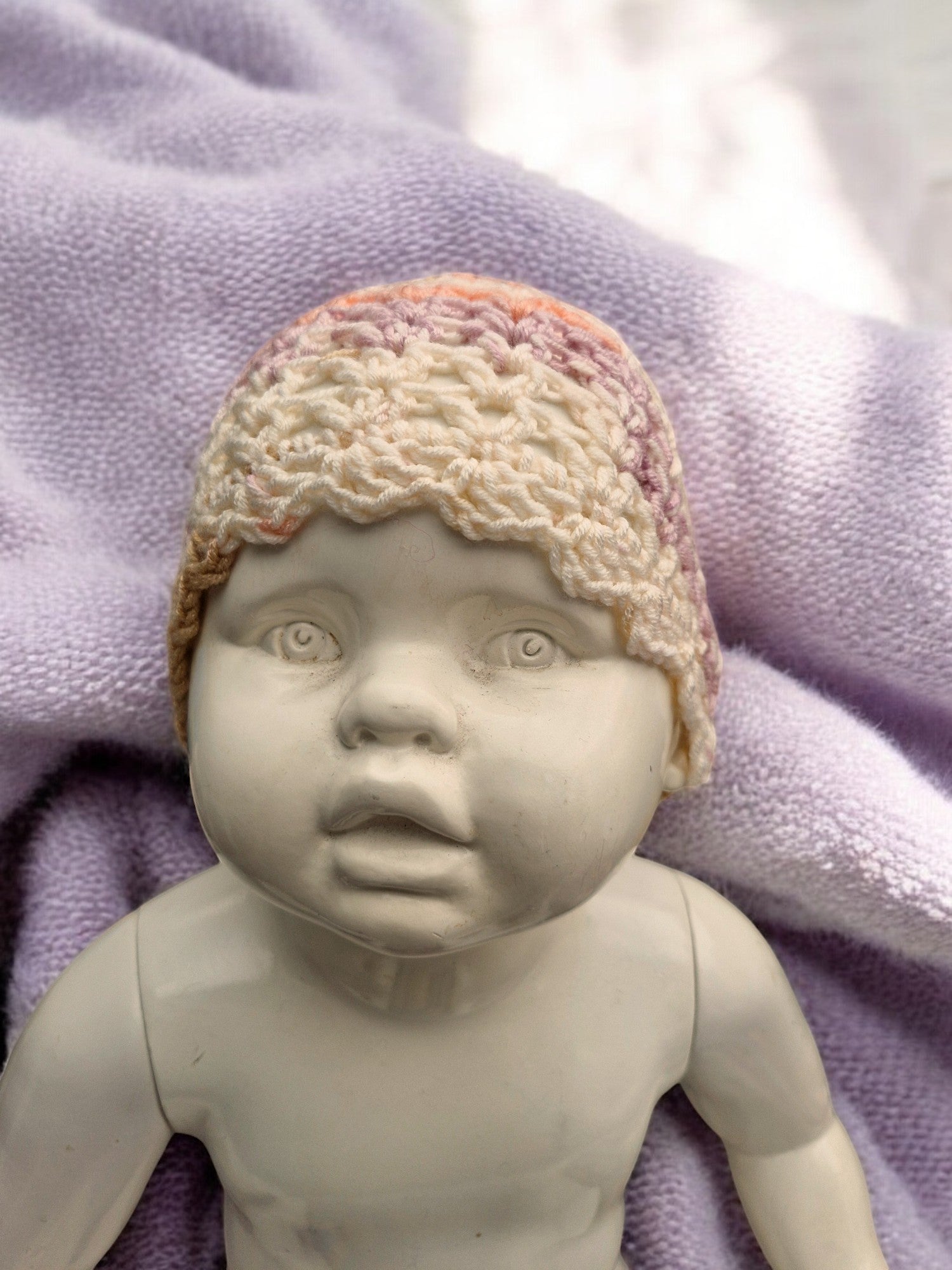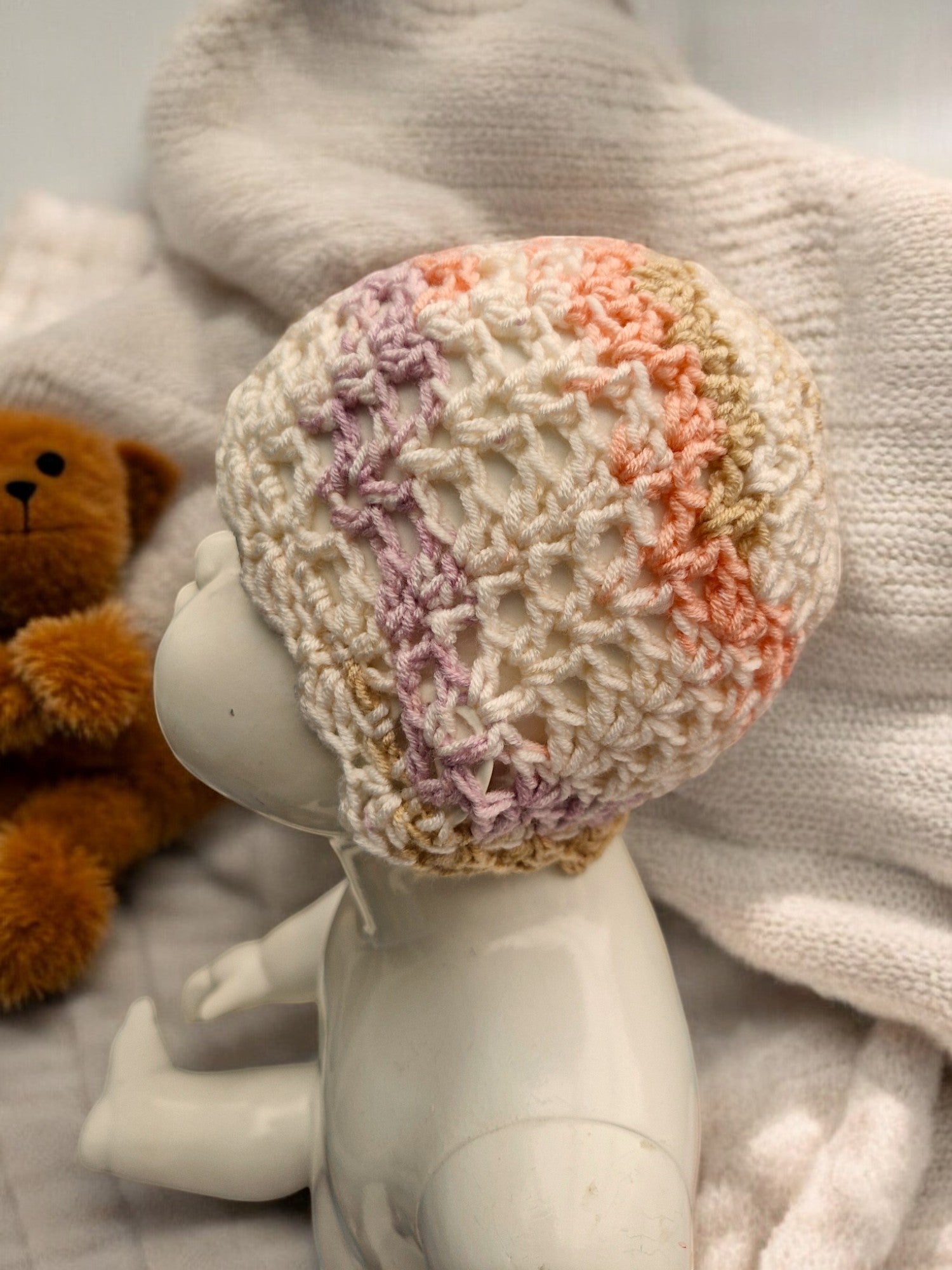 Baby's Handmade Crochet Lace Hat - Peach, Lilac, Cream, Fawn mix