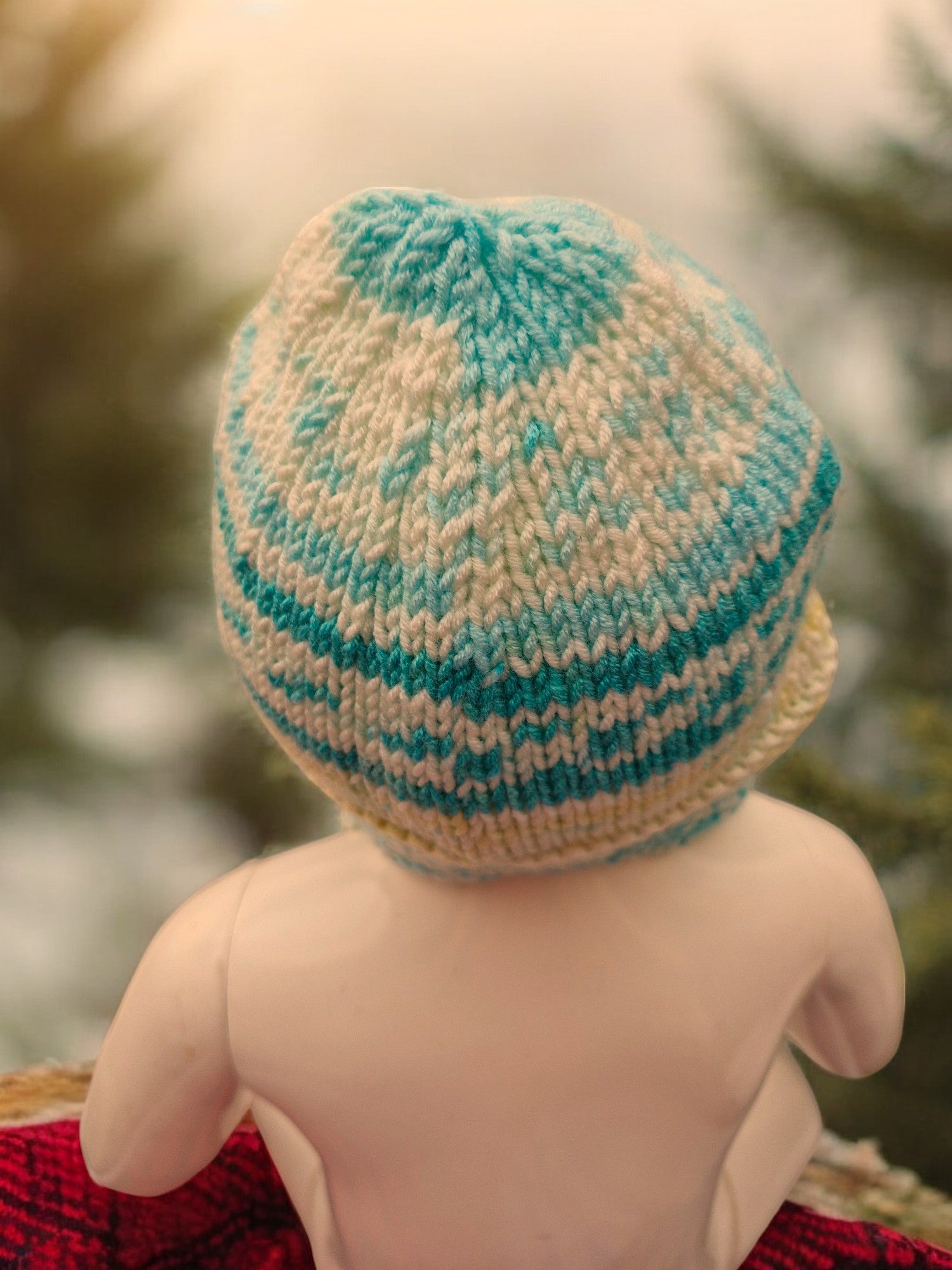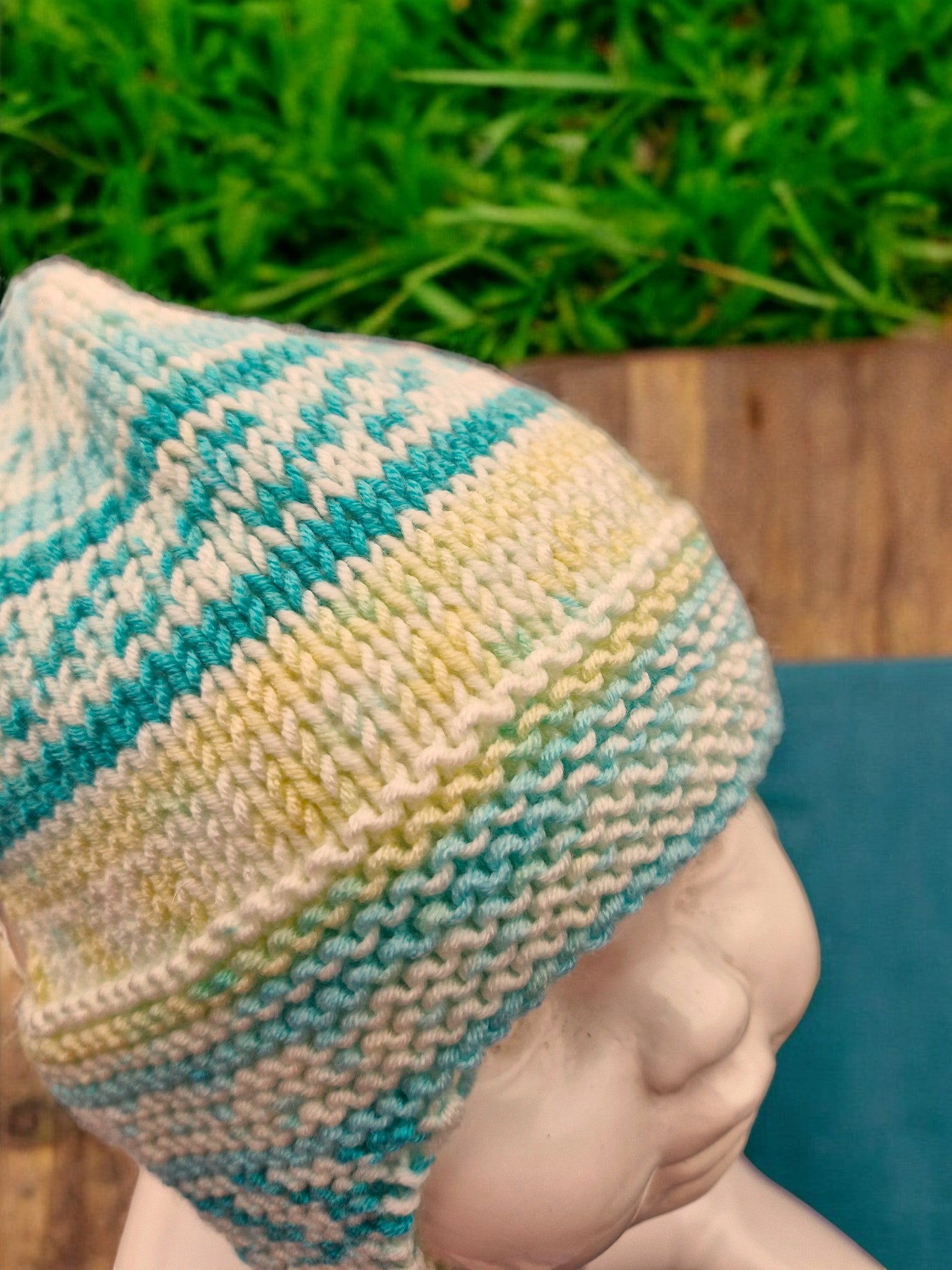 Baby's Handmade Knitted Ear Flap Helmet - Teal Green/Lemon/Cream
