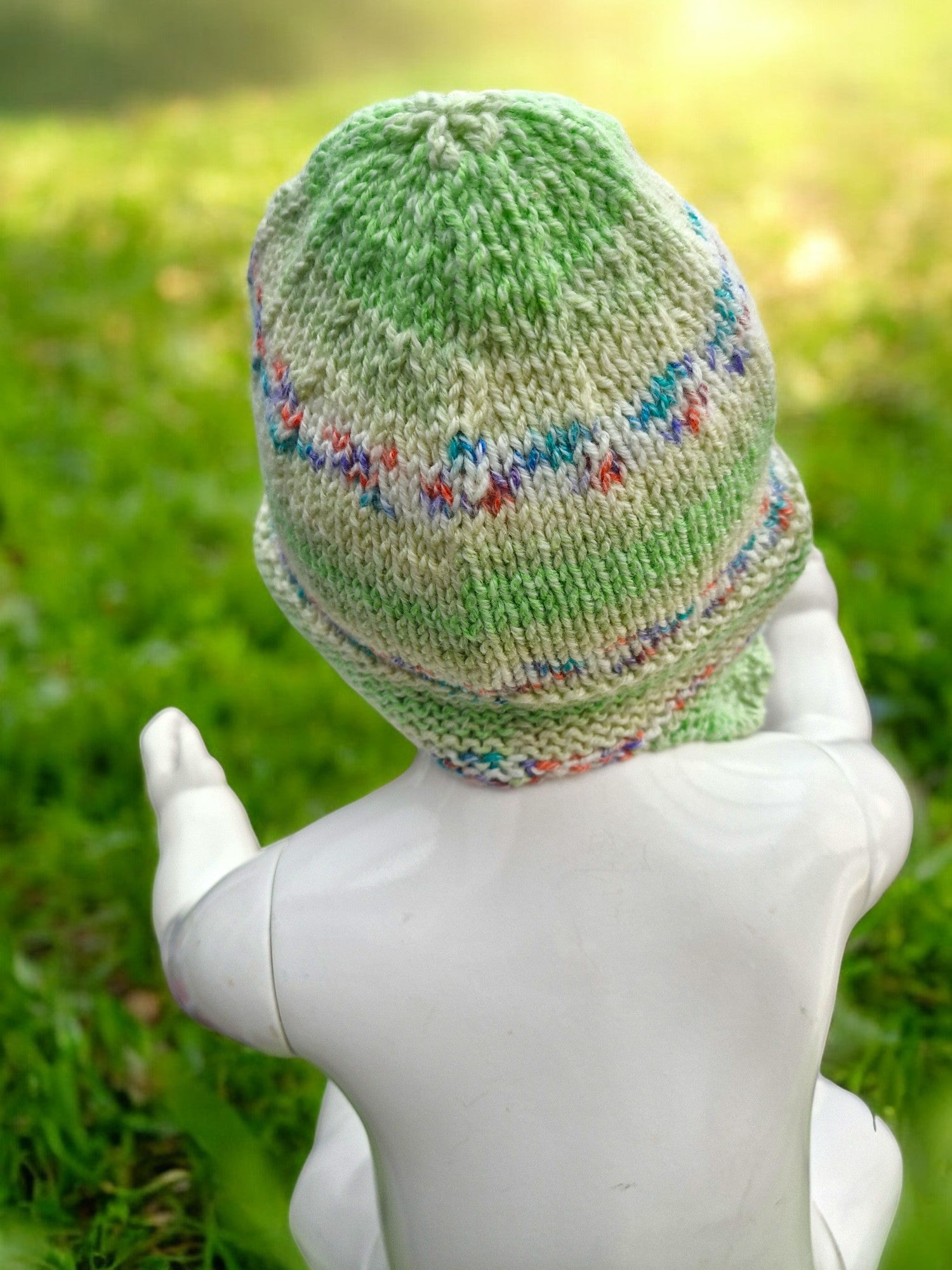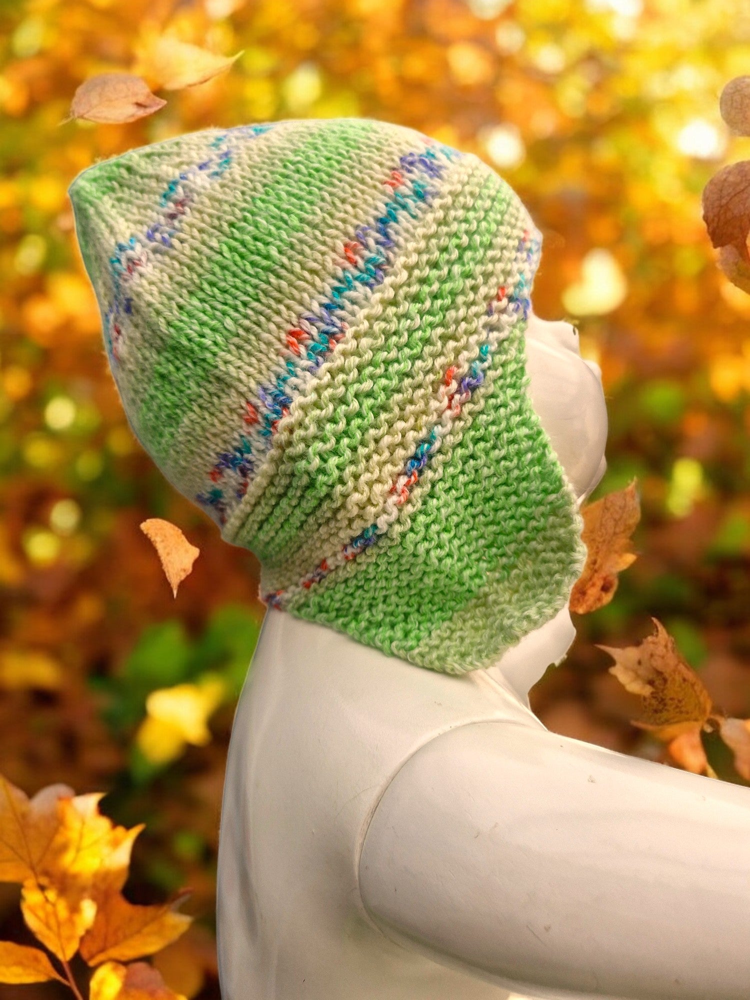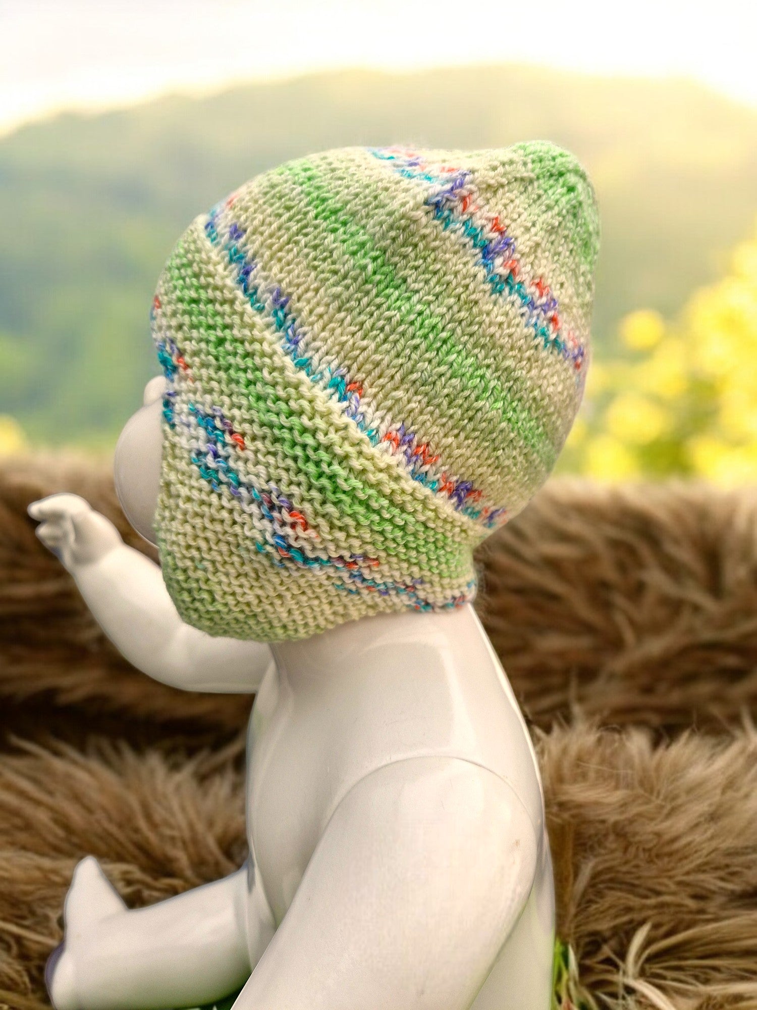 Baby's Handmade Knitted Ear Flap Helmet - Variegated Green