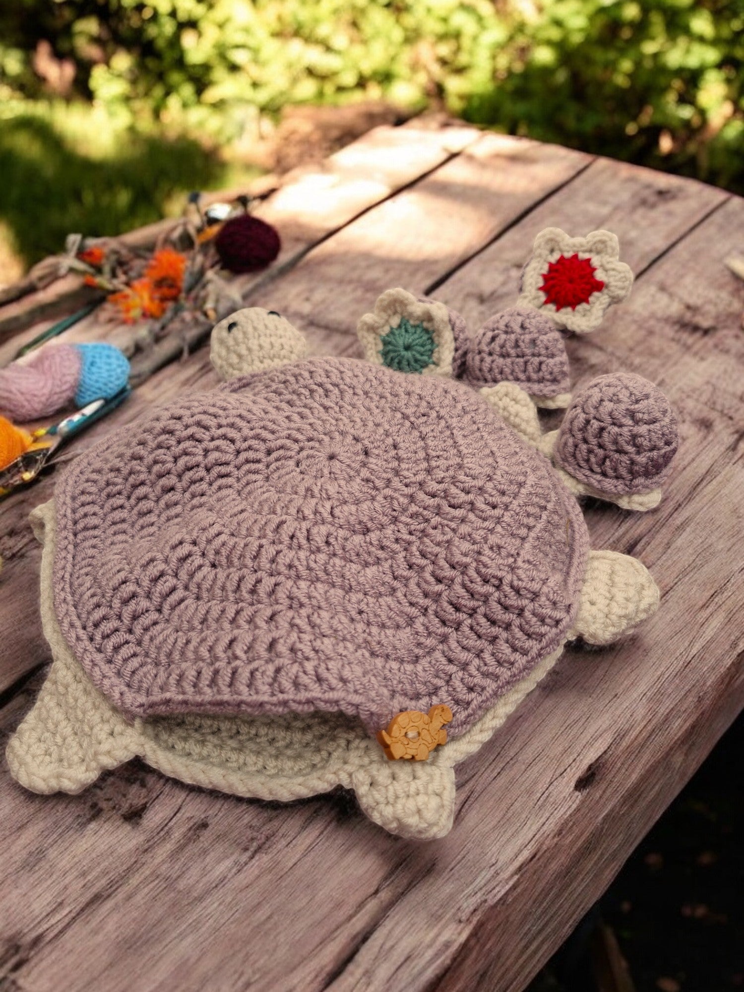 Handmade Crochet Turtle and Babies Memory Game - Soft Toy Mulberry/Beige