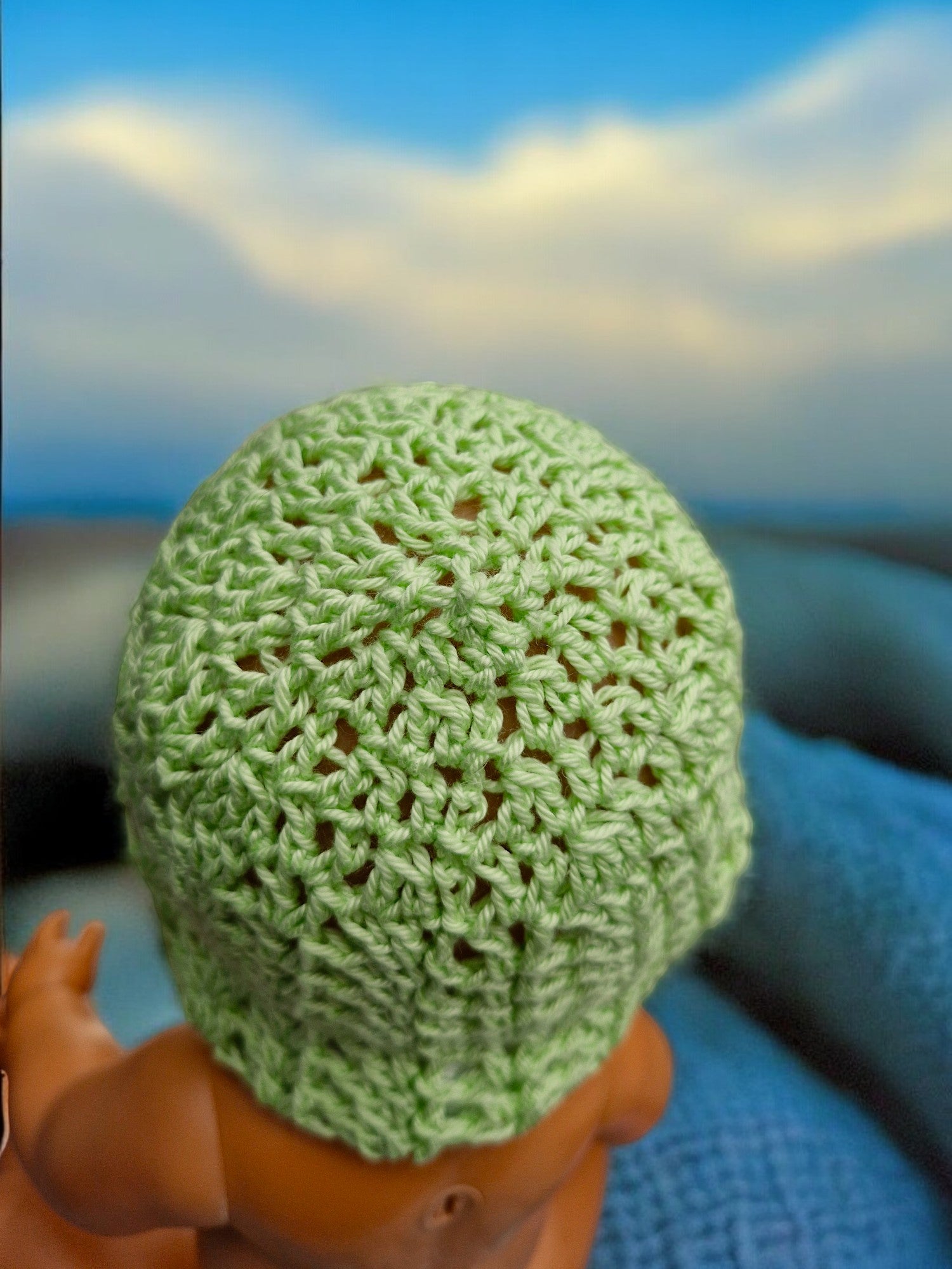 New Baby's Handmade Crochet Lace Hat - Mint Green Cotton
