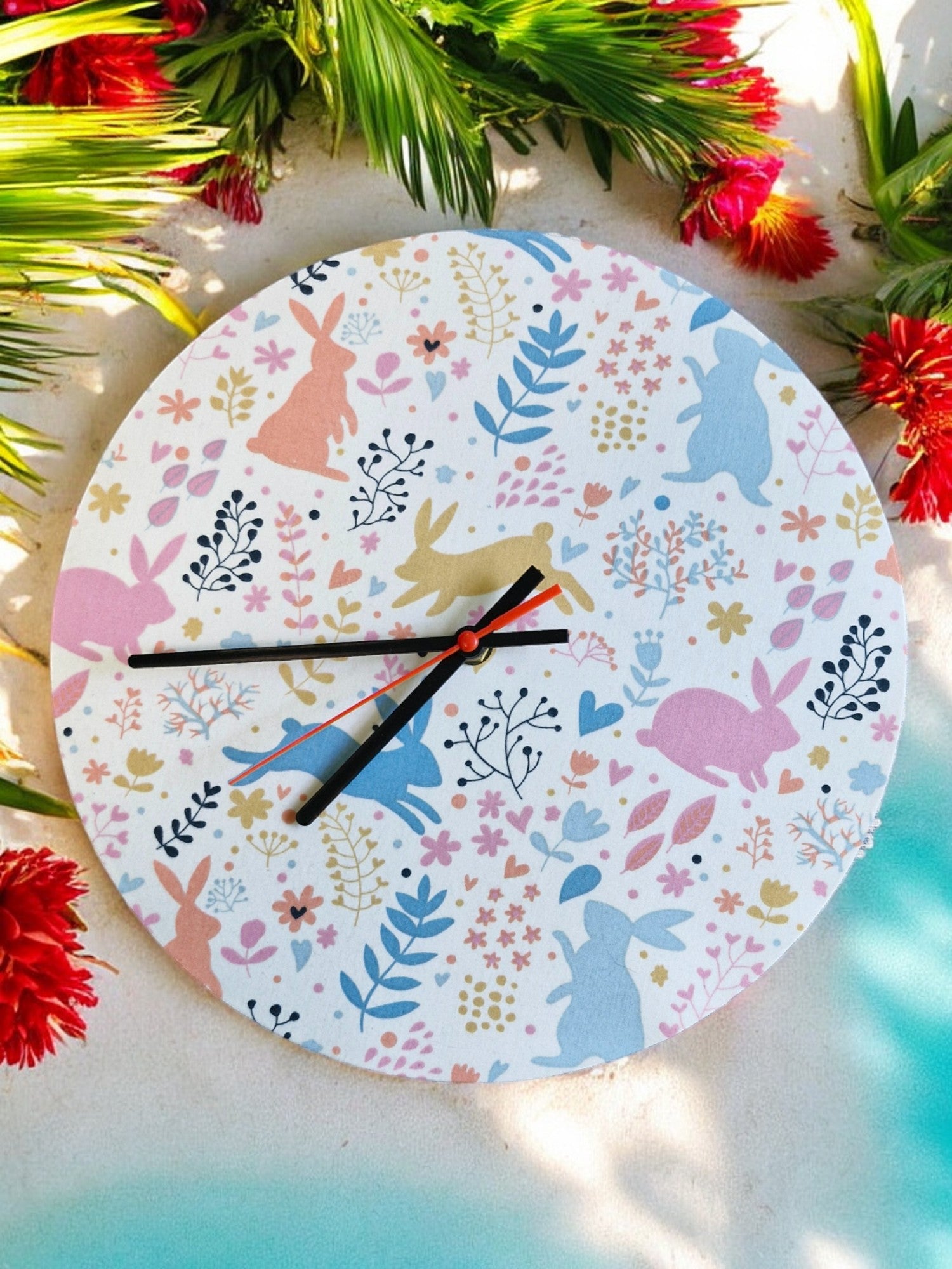 Bunny Rabbits Clock Handmade 30cms 12" Diameter
