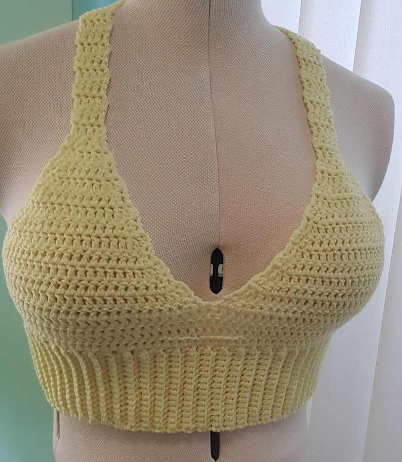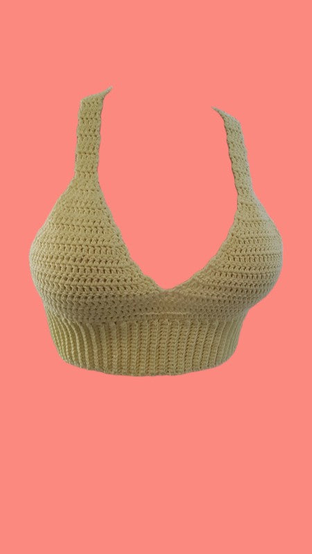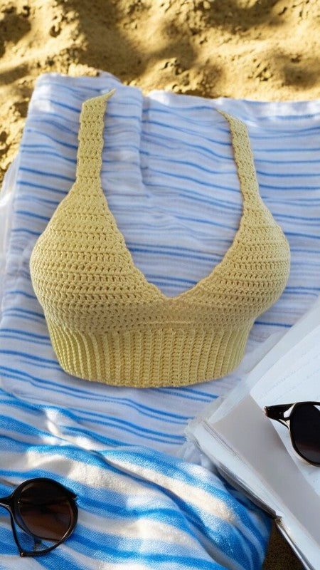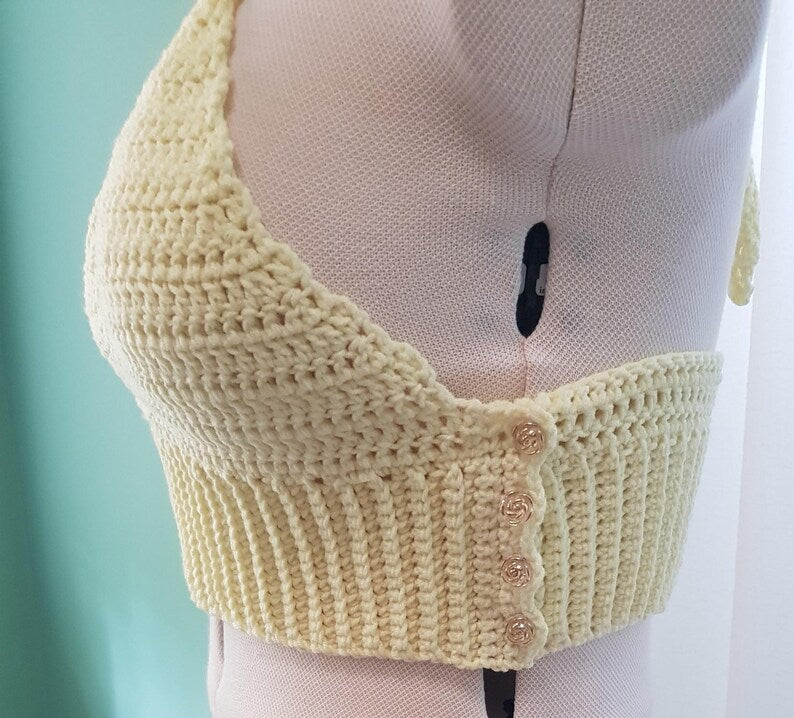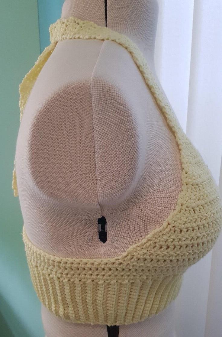 Women's Handmade Crochet Bralette Cropped Top in Lemon