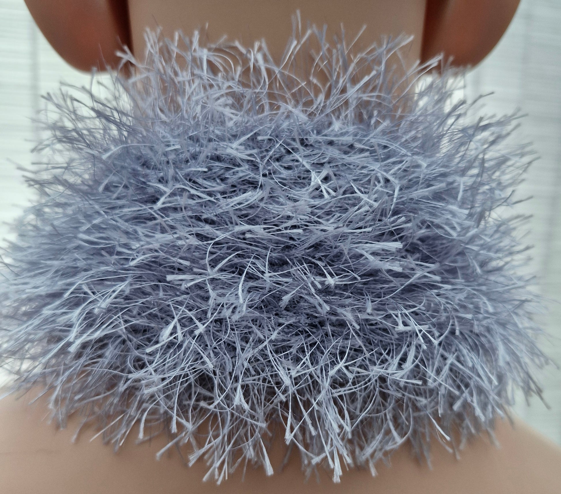 Brand new Adult's Hand Knitted Stocking Stitch Scarf in Silver Tinsel. Yarn isn't real tinsel - it's much softer but still with the long hair and glittery shine of tinsel - Chunky weight. Scarf is elegant and dressy. Made from 75% Polyester 25% Lurex - cool machine wash.
